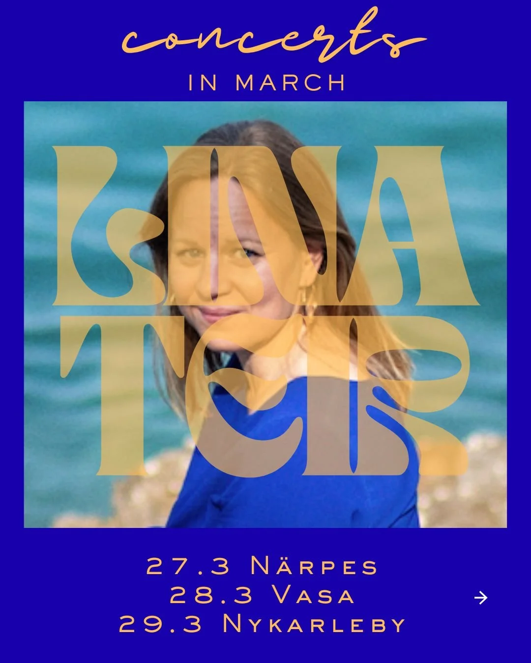I slutet av mars ger Lina Teir tre konserter i Österbotten. Läs mera om konserterna i Närpes 27.3, Vasa 28.3 och Nykarleby 29.3.